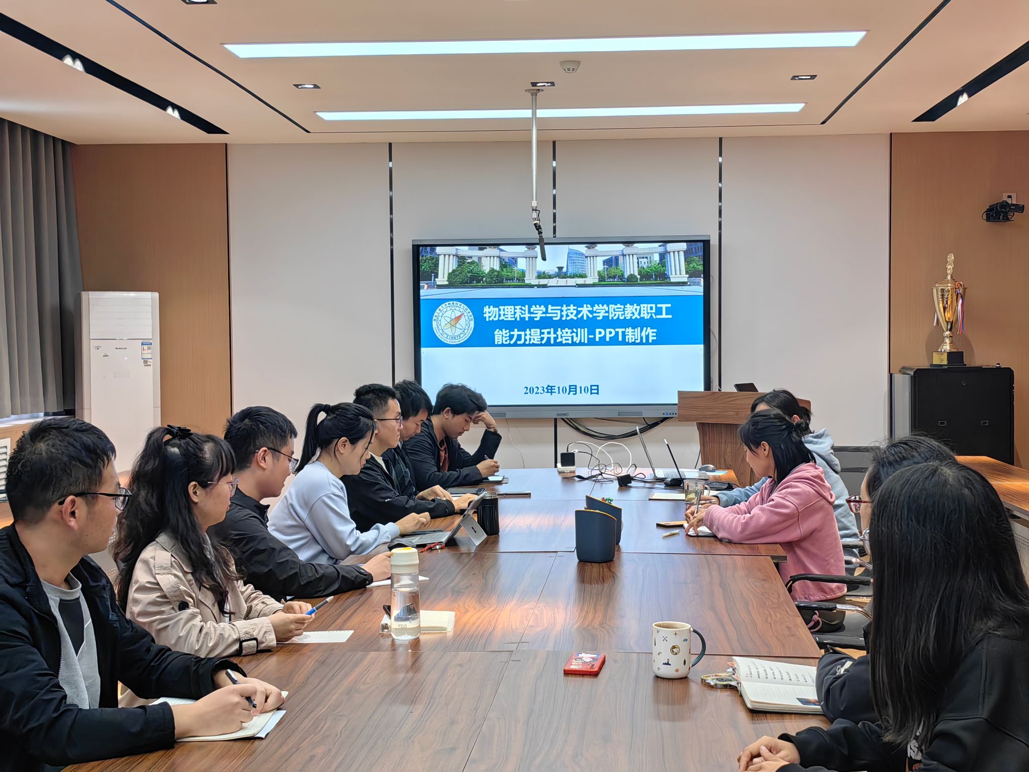 以线上和线下相结合的方式举办了教职工技能培训暨PPT制作能力提升培训会,邀请知名软件设计师杨臻为学院教职工作了题为《从逻辑到视觉 - 如何做好工作型PPT》的报告,学院近50名教职工参加了此次培训。